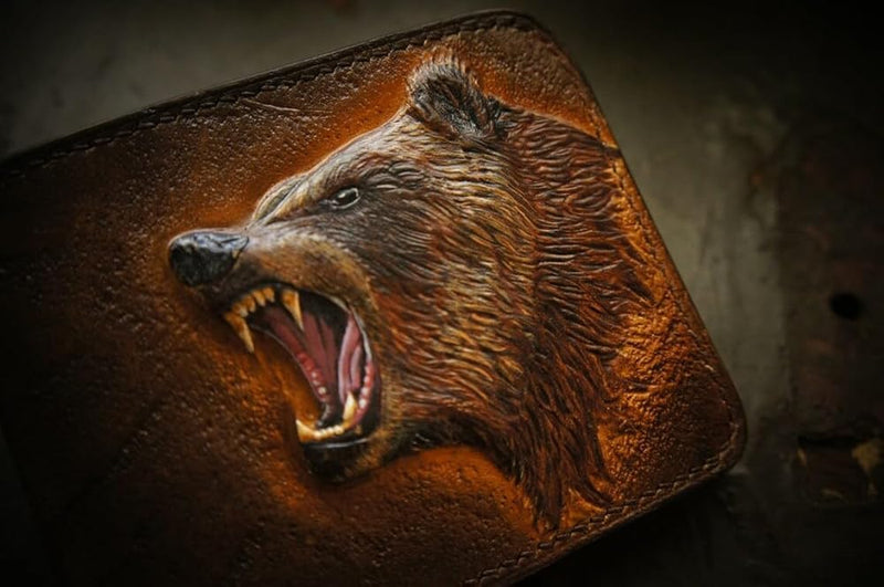 #002 Brown Grizzly Bear Leather Wallet | Perfect Gift for Him
