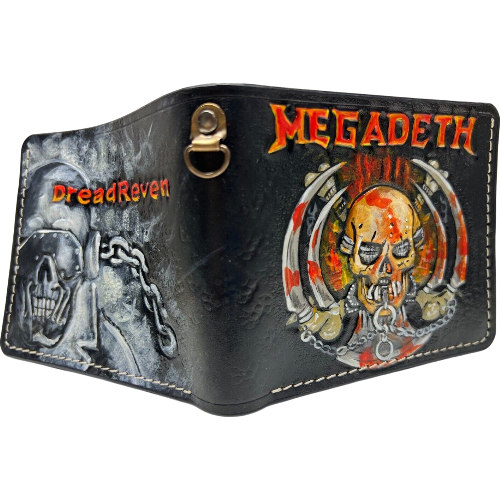 #011 Bifold Leather Wallet - Megadeth Skull Embossed Design | Perfect Gift for Him
