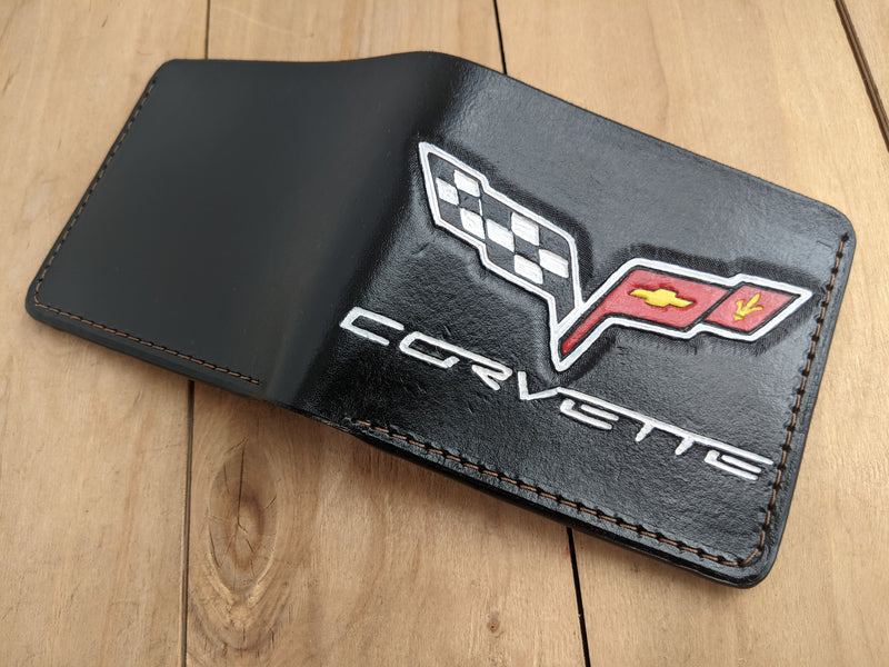 M1E1, Chevrolet Corvette Sports Car Crossed Flag Logo Wallet