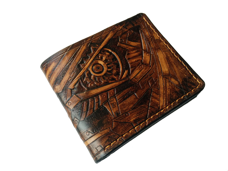 #031 Elden Ring Handcrafted Leather Bifold Wallet - Ring Malenia, Biker Designs, Hand Tooled, Embossed Wallet