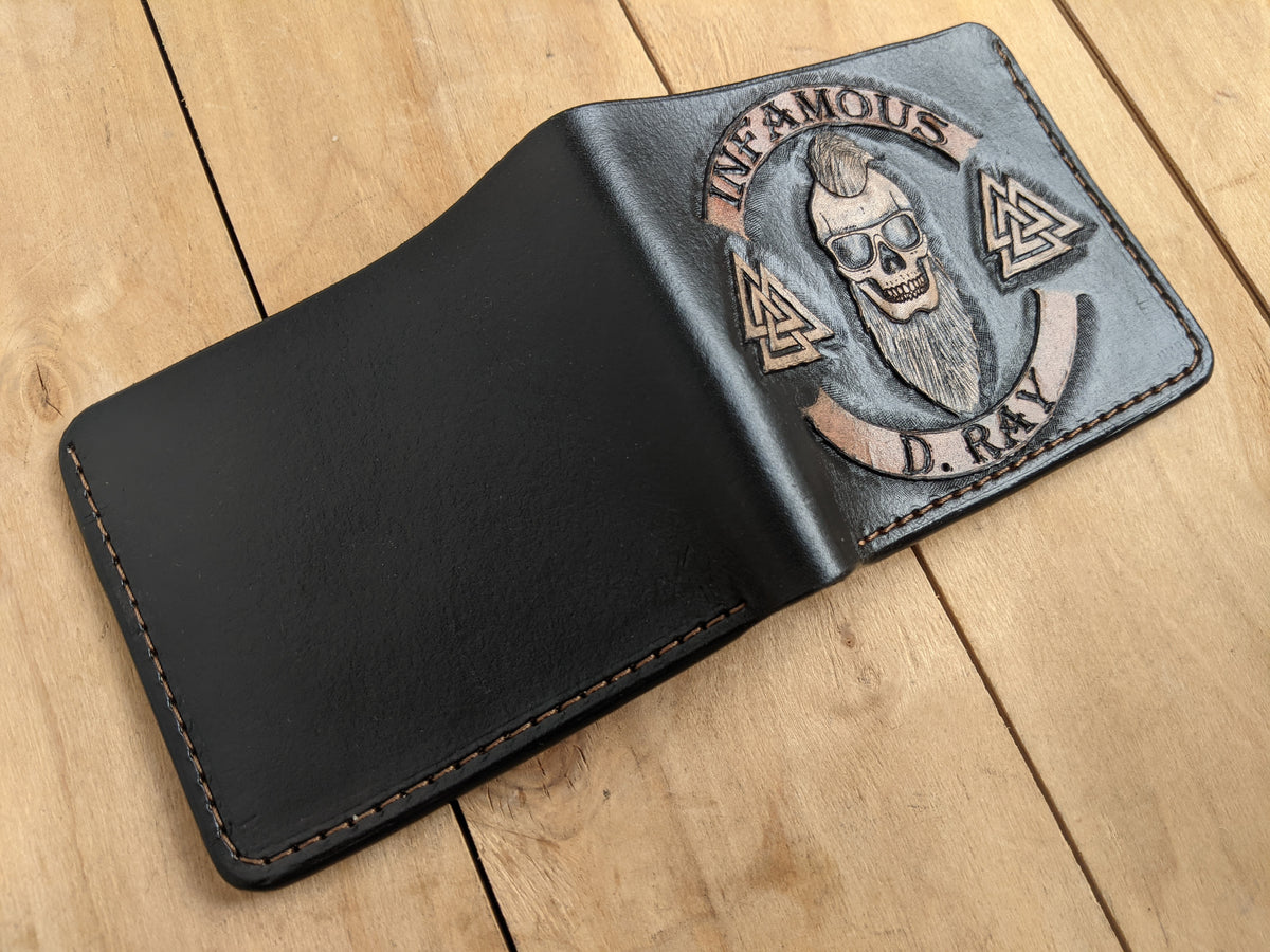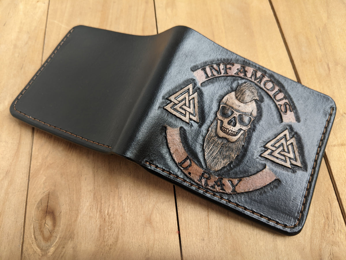 Our exquisite handmade leather wallet, crafted from high-quality vegetable-tanned leather. This unique wallet features stunning hand-tooled and hand-painted designs, making it a true work of art.