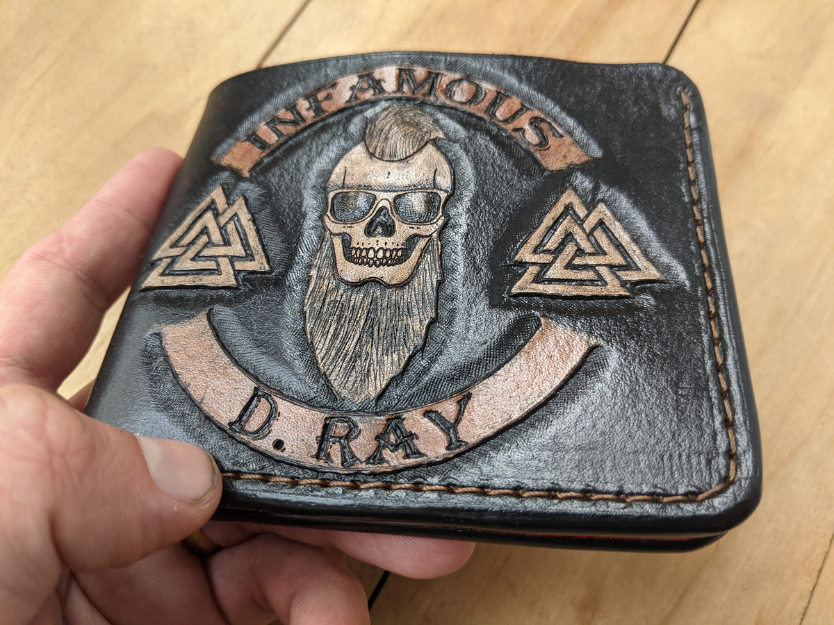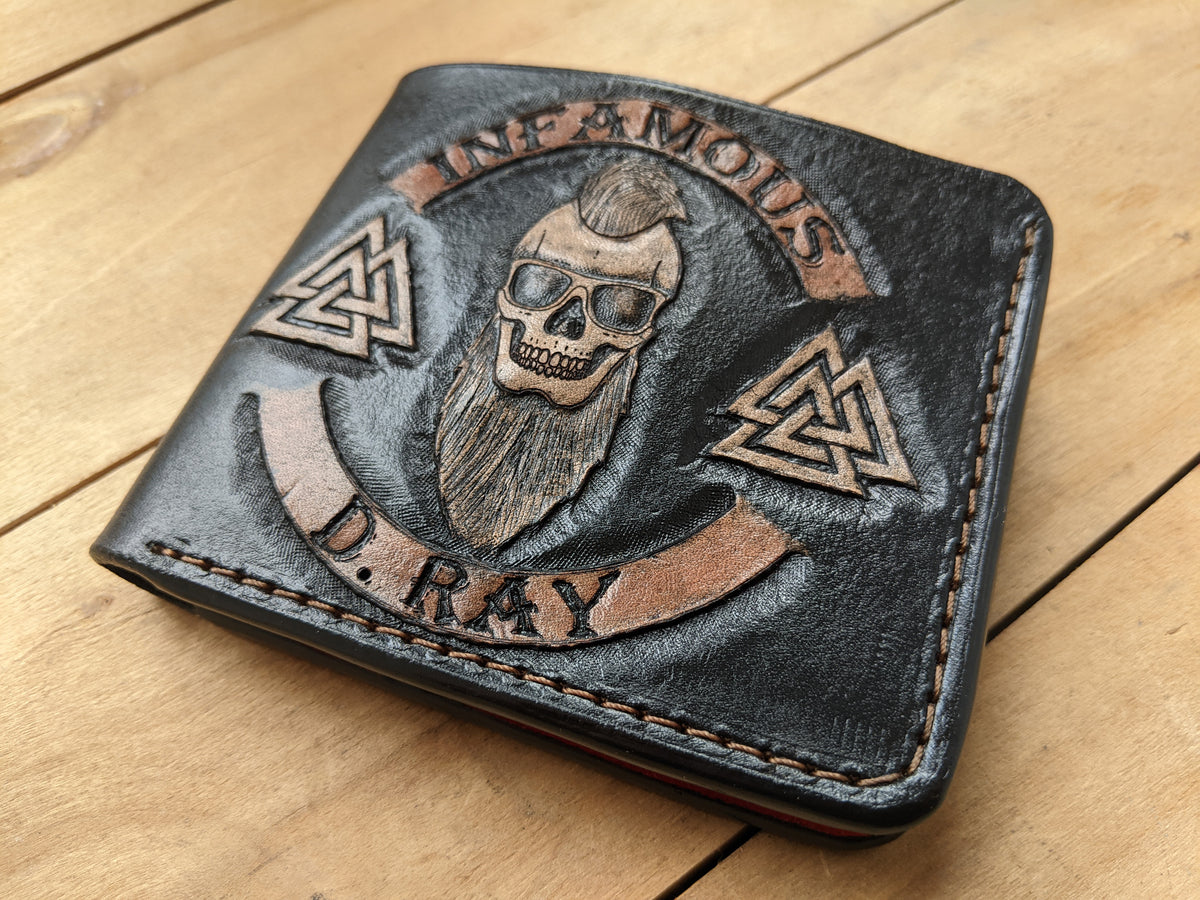 Handmade bifold leather wallet featuring an embossed Viking hipster skull with beard and the iconic Valknut symbol — a powerful Norse emblem linked to Odin and warrior spirit. This RFID-protected wallet fuses ancient mythology with modern edge, making it a bold everyday carry. A standout gift for Viking lovers, Norse mythology fans, and anyone who appreciates warrior aesthetics with a twist of style.