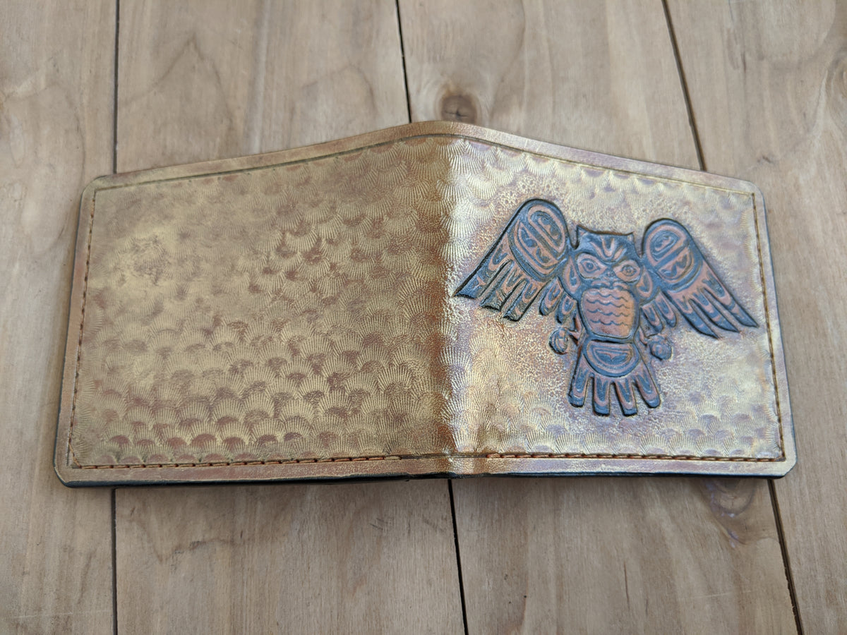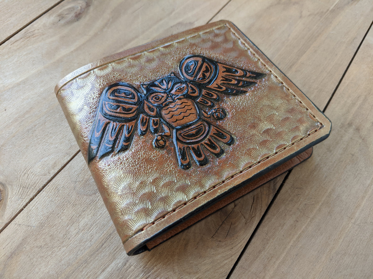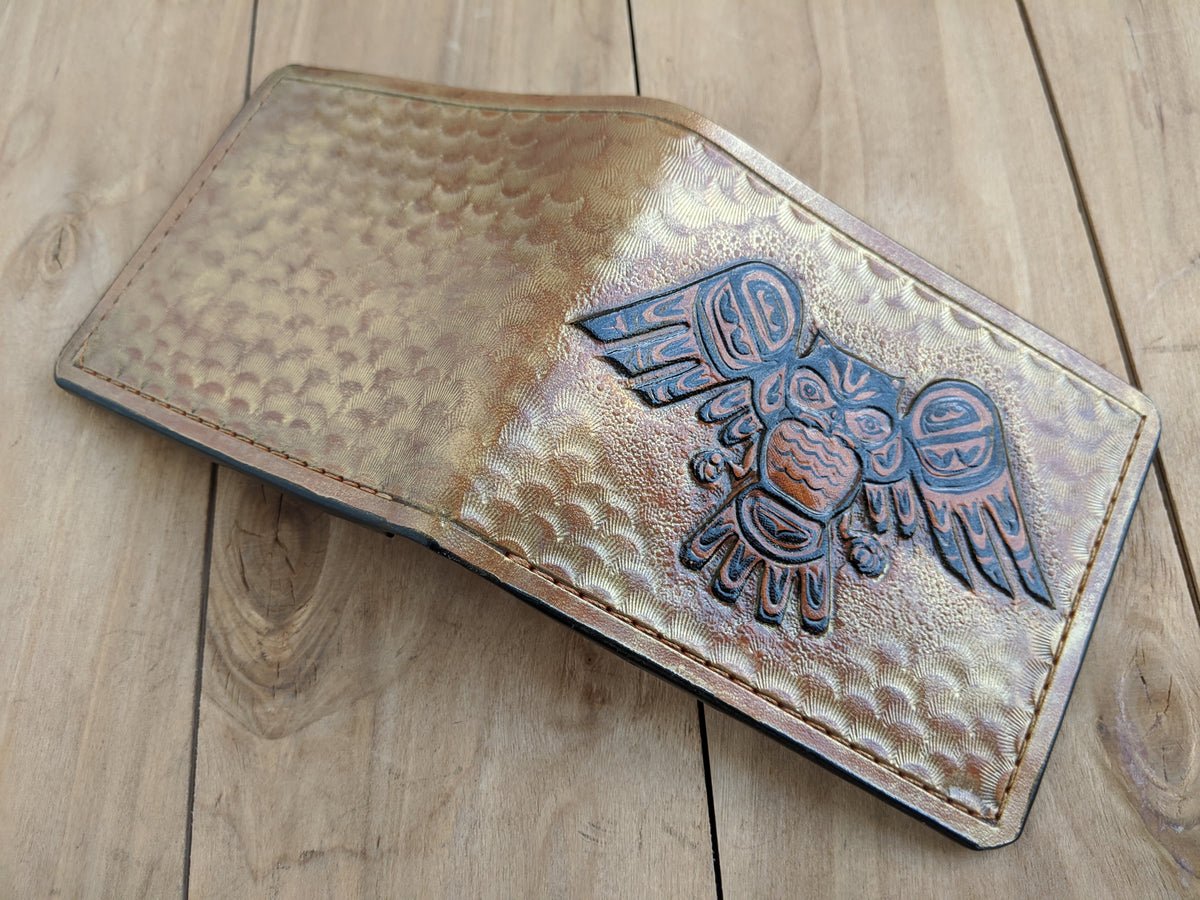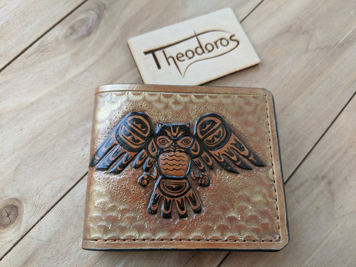 Our exquisite handmade leather wallet, crafted from high-quality vegetable-tanned leather. This unique wallet features stunning hand-tooled and hand-painted designs, making it a true work of art.