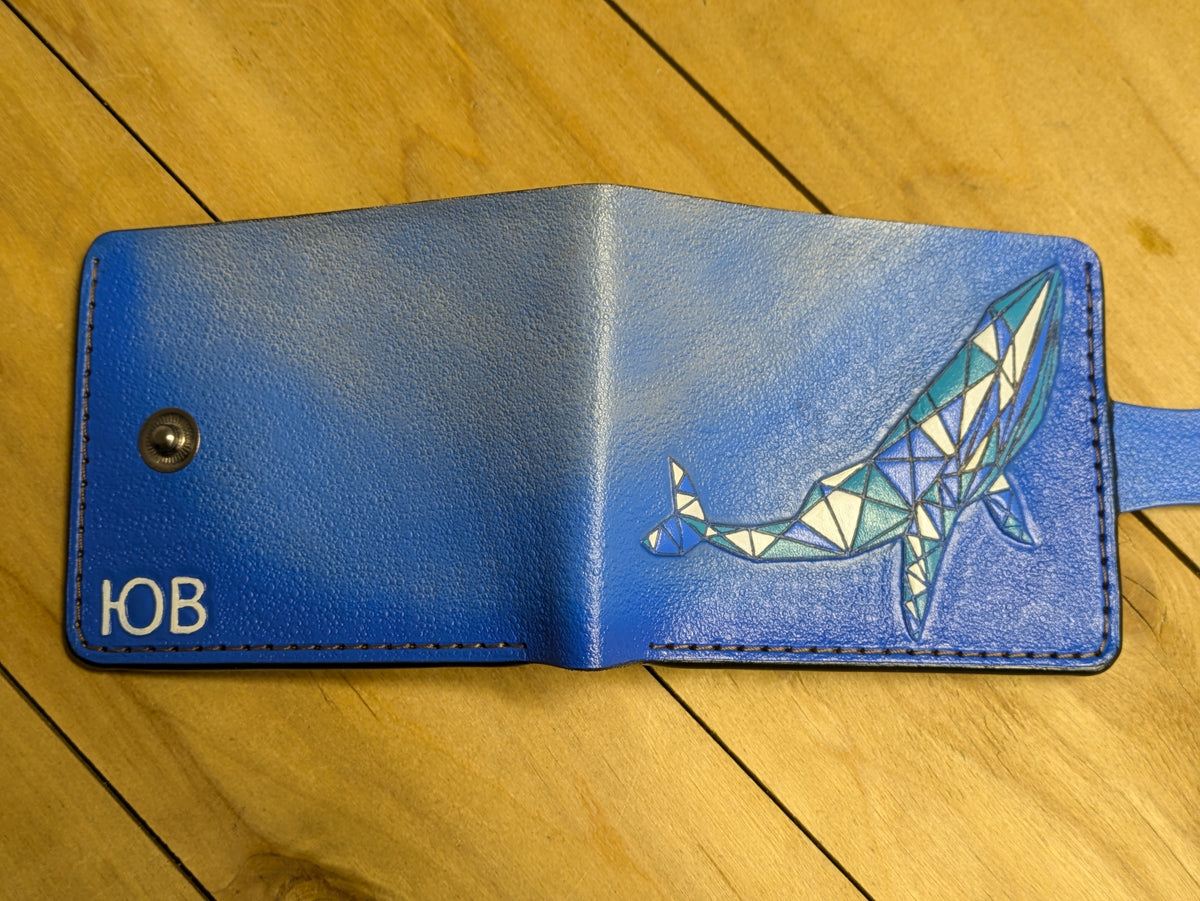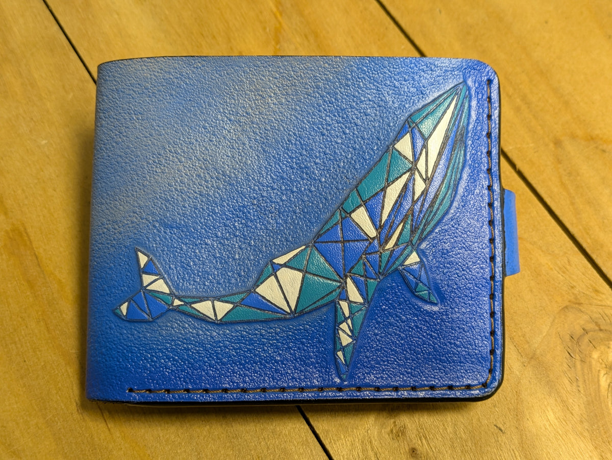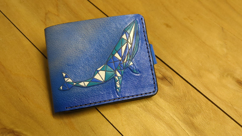 This handmade leather bifold wallet features a stunning embossed design of a polygonal blue whale, orca, and fish, making it a perfect gift for ocean and whale lovers. Crafted from premium leather, it offers RFID protection for security and durability. Ideal for marine enthusiasts, whale fans, and those who appreciate unique, nature-inspired designs. A great gift for birthdays, Father's Day, or any special occasion.