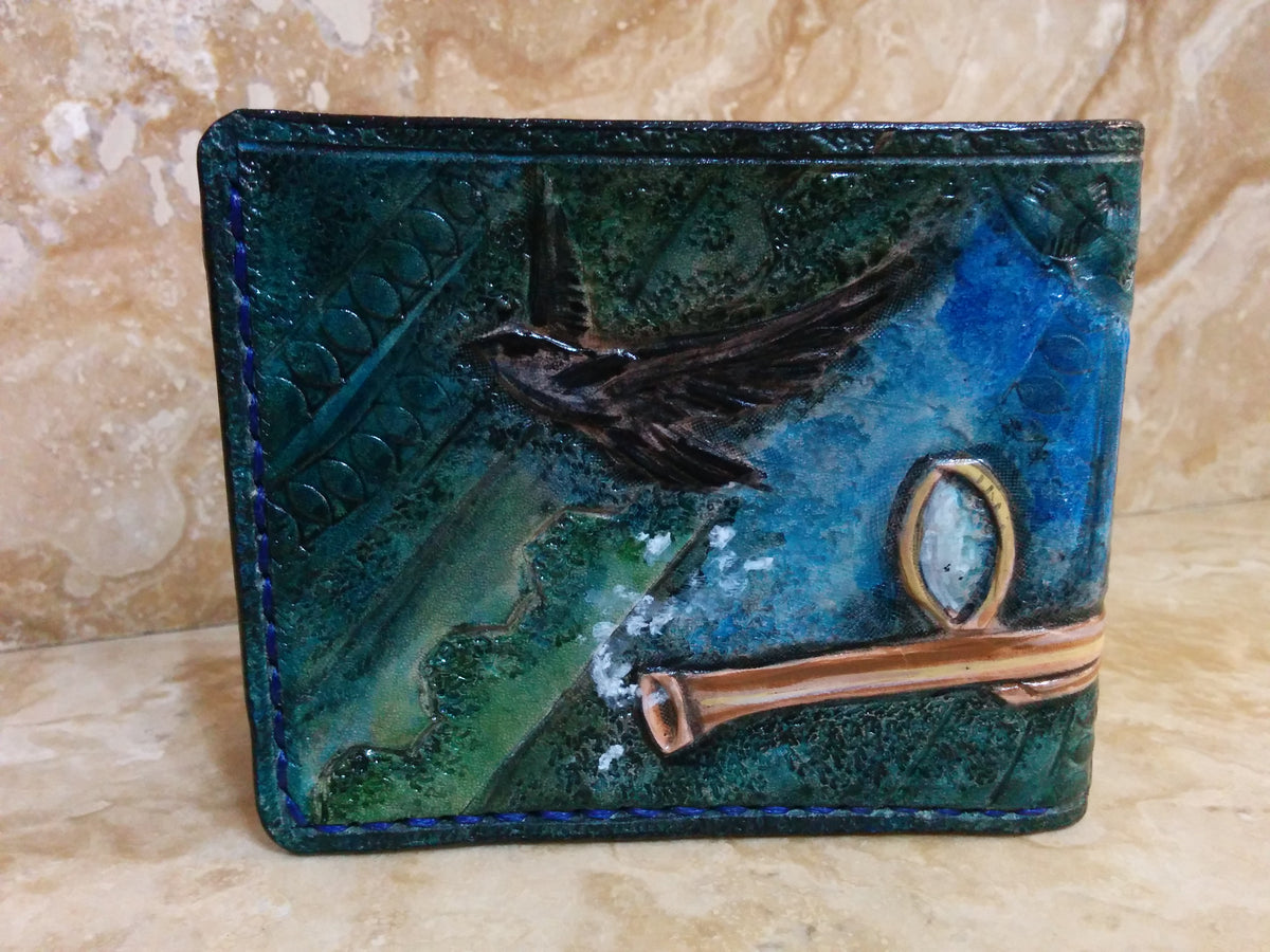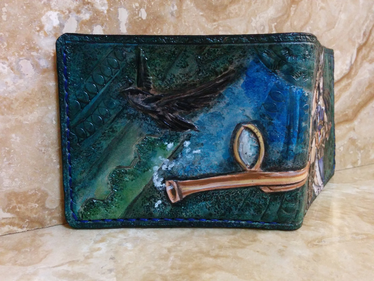 Our exquisite handmade Genuine leather wallet, crafted from high-quality Full Grain Vegetable Tanned Leather. This unique wallet features stunning hand-tooled and hand-painted designs, making it a true work of art.