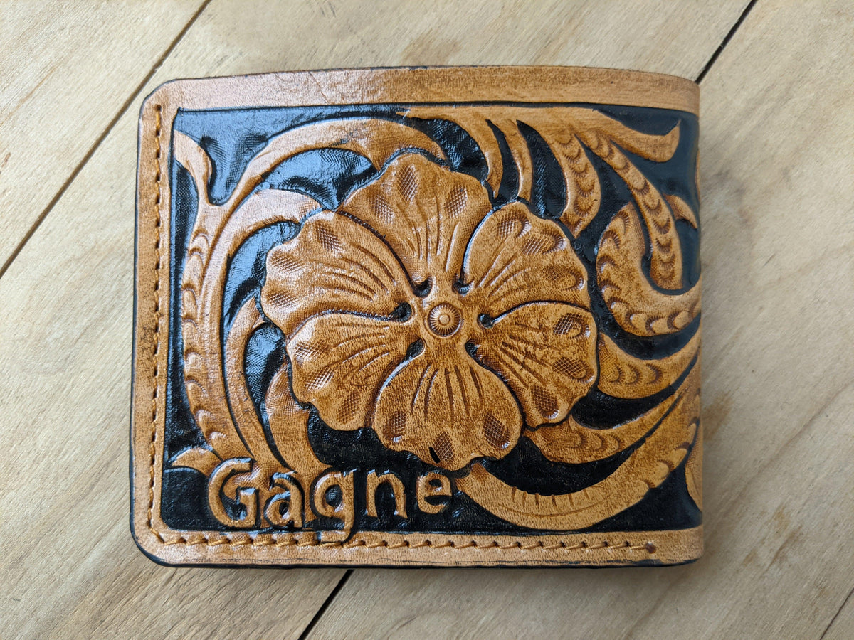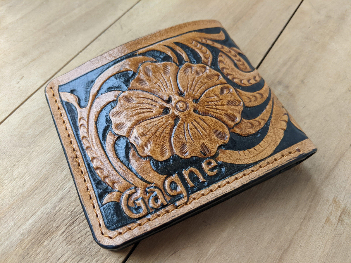 Our exquisite handmade leather wallet, crafted from high-quality vegetable-tanned leather. This unique wallet features stunning hand-tooled and hand-painted designs, making it a true work of art.