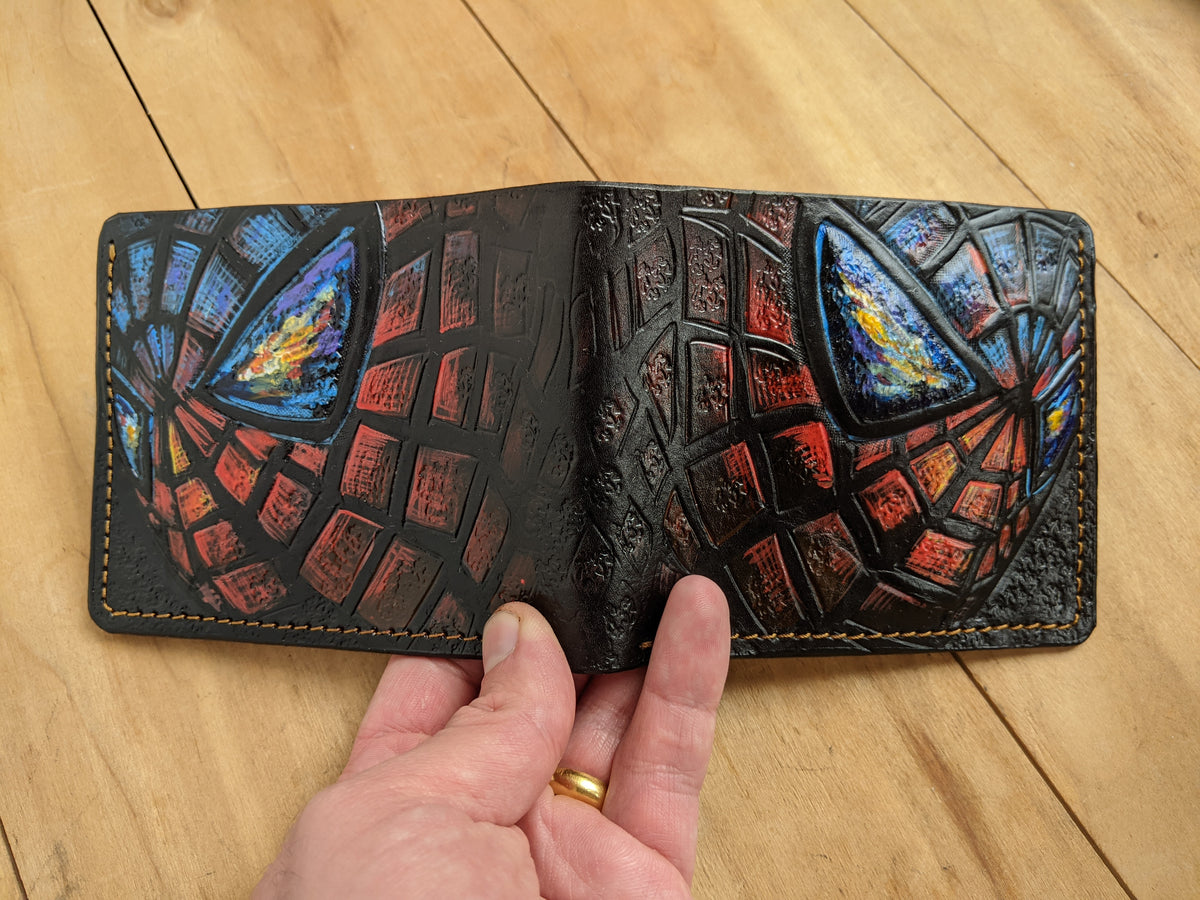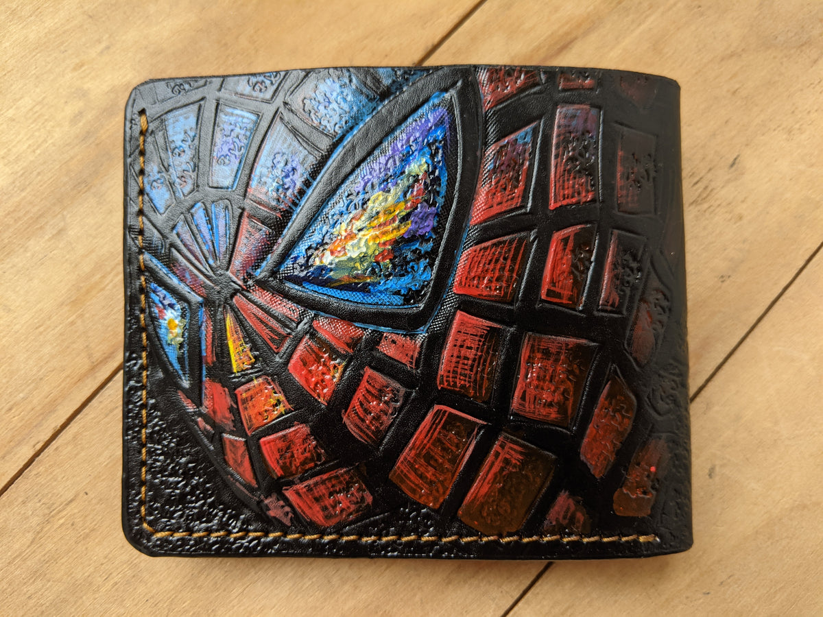Handmade leather wallet featuring an embossed design of Spider-Man, the legendary web-slinging alter ego of Peter Parker. This dynamic bifold captures the spirit of Marvel’s beloved superhero with bold comic-style detail and genuine leather craftsmanship. A perfect everyday accessory for Marvel fans, comic book lovers, and collectors of superhero memorabilia. Swing into style with this heroic gift inspired by one of the most iconic characters in the Marvel universe.