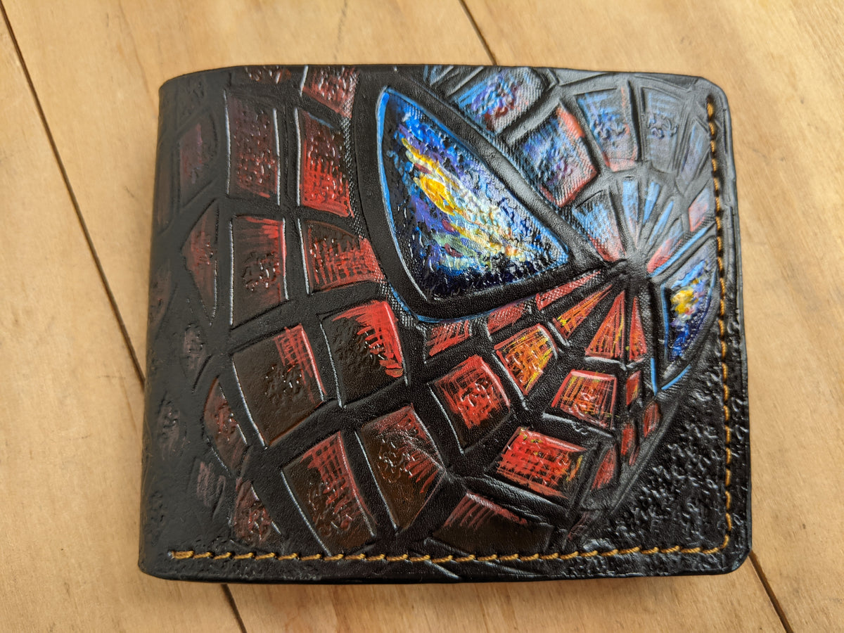 Introducing our exquisite handmade leather wallet, crafted from high-quality vegetable-tanned leather. This unique wallet features stunning hand-tooled and hand-painted designs, making it a true work of art.