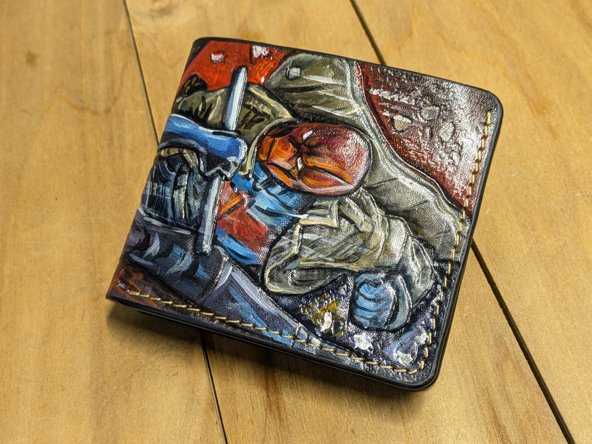 Introducing our exquisite handmade leather wallet, crafted from high-quality vegetable-tanned leather. This unique wallet features stunning hand-tooled and hand-painted designs, making it a true work of art.