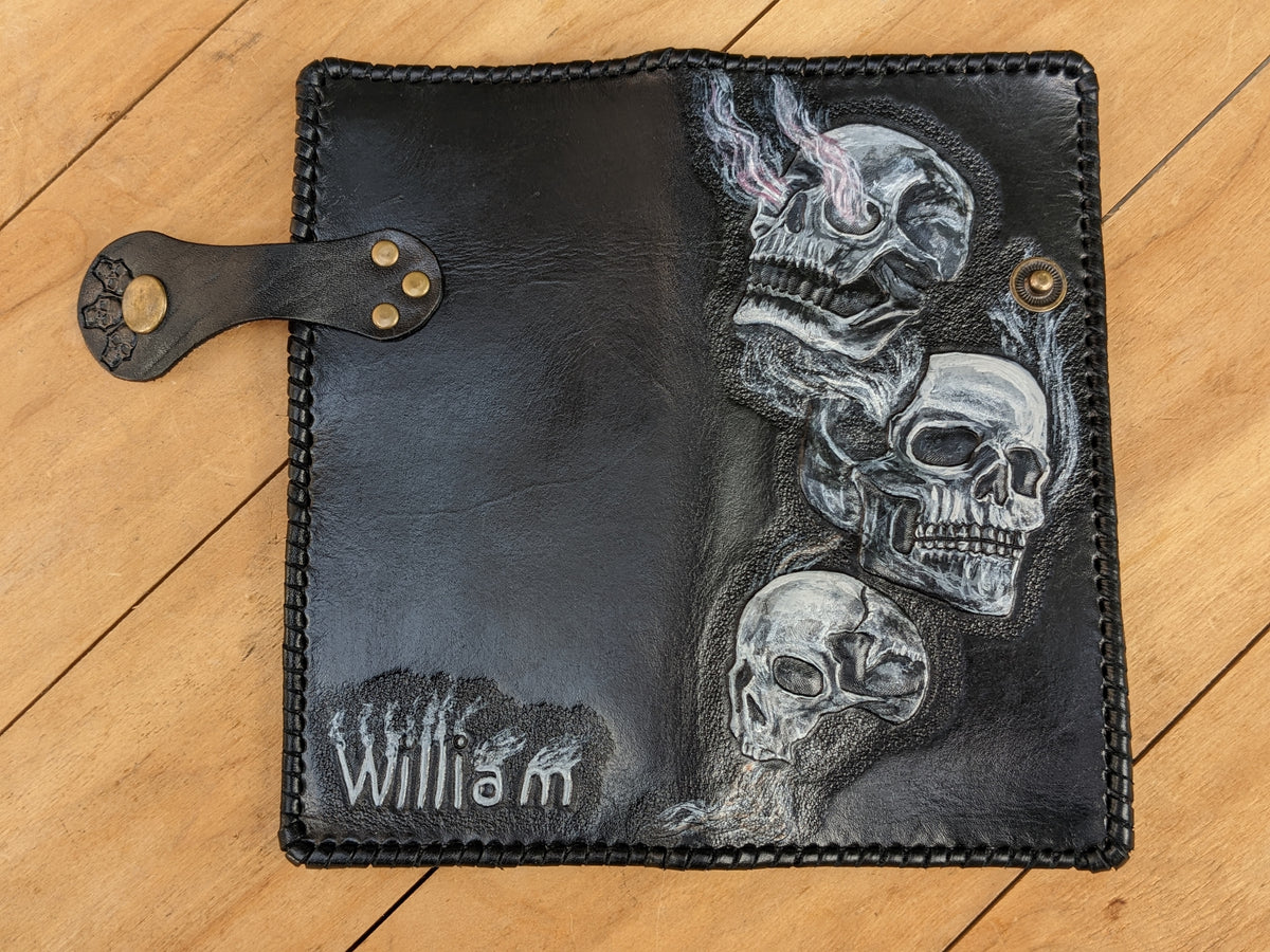 M2S5, Three Flaming Smoking Skull, Fiery Skeleton Wallet