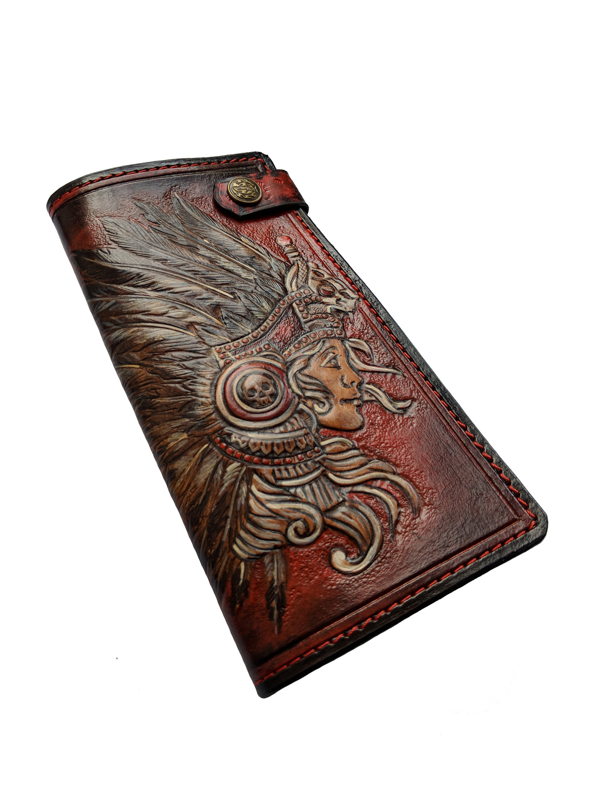 Celebrate strength, heritage, and artistry with this handmade women’s long clutch wallet featuring an intricately embossed Native American Indian chief design. Inspired by the spirit of the Amazons and tribal tradition, this wallet is crafted from premium genuine leather for a rich, durable finish. With RFID protection and a spacious layout for cards, cash, and essentials, it combines elegance with meaningful symbolism. A unique and empowering gift for her—ideal for birthdays, holidays, or as a bold everyday accessory.