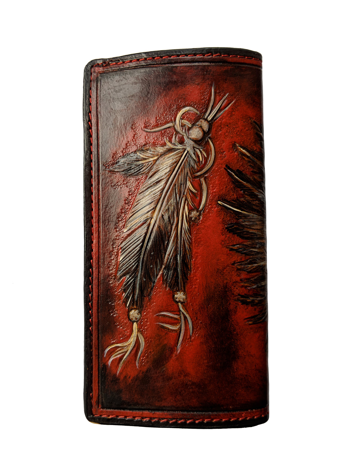 Introducing our exquisite handmade leather wallet, crafted from high-quality vegetable-tanned leather. This unique wallet features stunning hand-tooled and hand-painted designs, making it a true work of art.